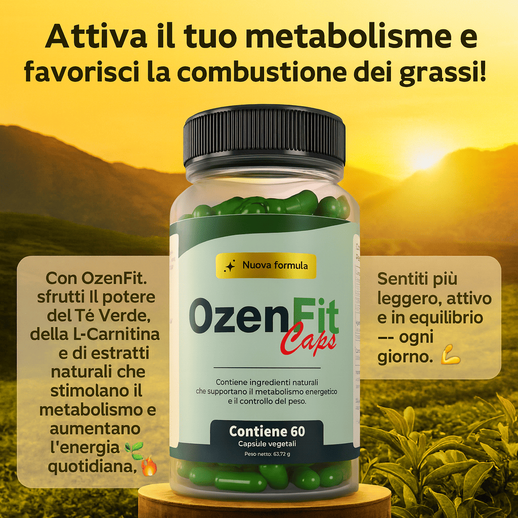 OzenFit combina ingredienti naturali selezionati che supportano il metabolismo, la combustione dei grassi e l’energia quotidiana. Studi clinici su componenti come Tè Verde, L-Carnitina e Cromo hanno mostrato risultati misurabili nella gestione del peso e della vitalità.